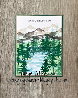 I used Stampin' Up Snowfront and Morning Meadow stamp sets. Shaded Spruce, Crumb Cake, Chocolate Chip, Pistachio Pudding, Balmy Blue, and Pool Party inks. Shaded Spruce, Crumb Cake, and White card stock. Kathryn and Me.